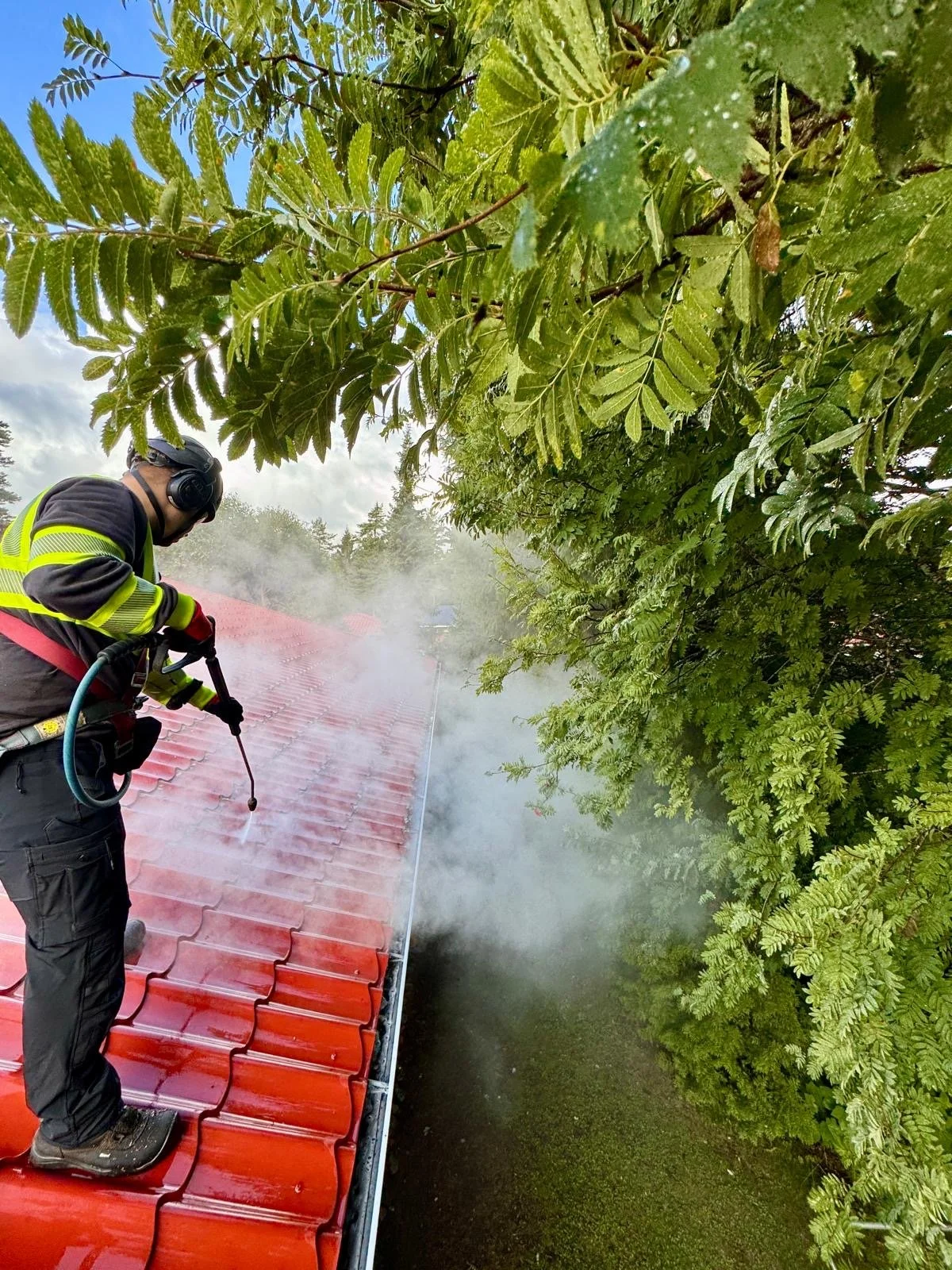 No yard or roof is beyond our reach. Patio tiles, metal roofs, and other challenging surfaces are thoroughly cleaned with our powerful pressure washing. We also specialize in gentle anti-vegetation treatments for tile roofs.